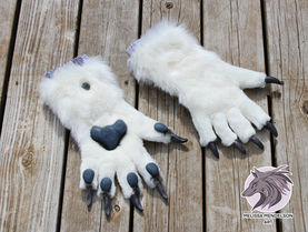 Starts at $700. Includes soft silicone pawpads, resin claws, airbrush painting, and elastic edges to ensure it stays up on your arms. Typically mid forearm length. I do not line my hands, but they are edged to prevent fraying. The fingers are double stitched and serged to prevent holes opening in these high-use areas.